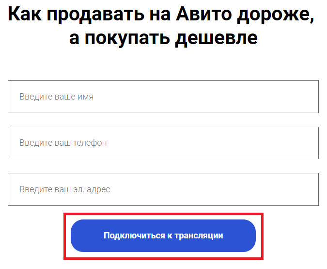 1. Заполните свои данные (имя, телефон, почту). Нажмите на кнопку Подключиться к трансляции